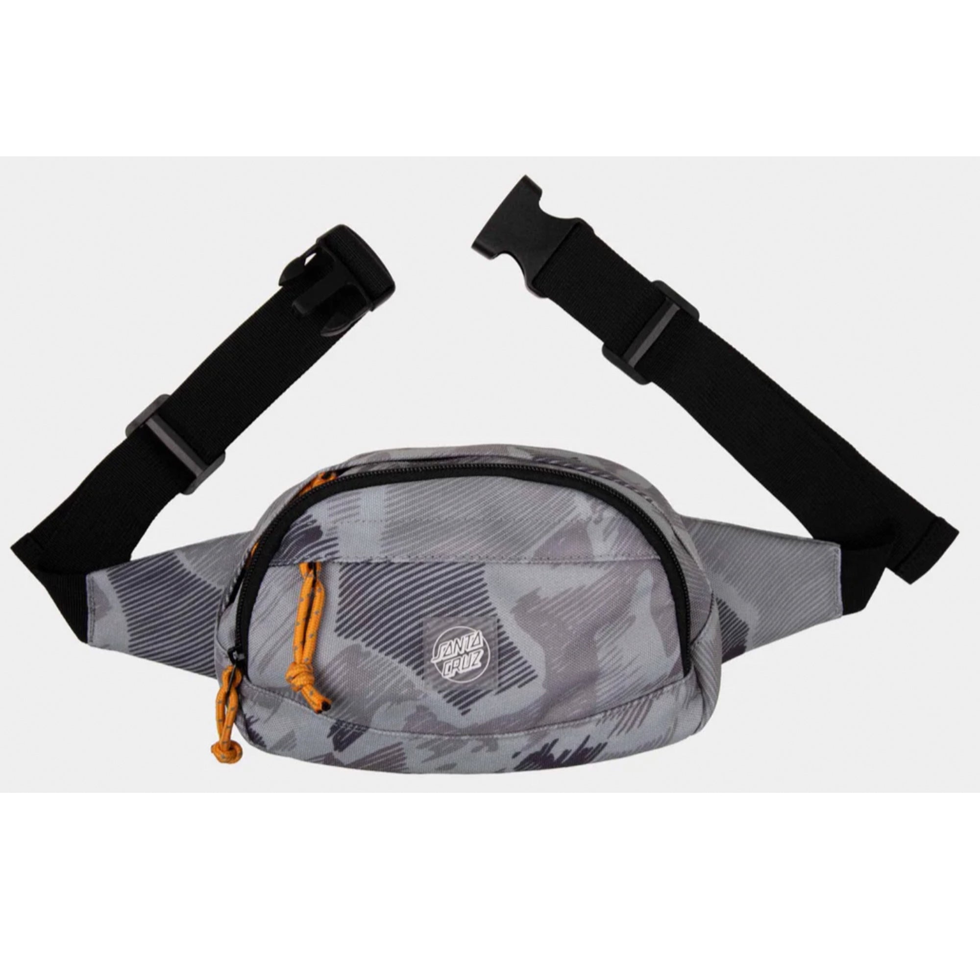 La correa ajustable permite llevarla cómodamente en la cintura o cruzada al pecho, mientras que el logo de goma Santa Cruz aporta un acabado limpio y reconocible.