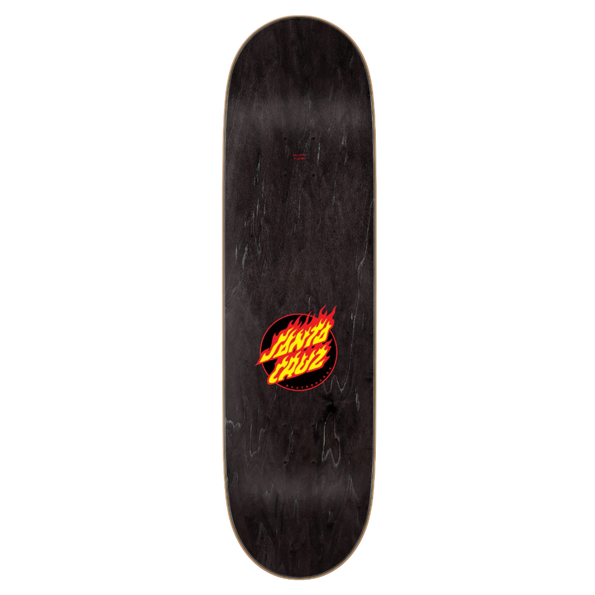 No es una deck cualquiera dentro del catálogo de Santa Cruz. La Flame Dot Striped combina uno de los lenguajes gráficos más reconocibles de la marca con un acabado sobrio y potente: base teñida en light grey y top teñido en negro, una combinación que refuerza su estética limpia, agresiva y muy fácil de identificar.