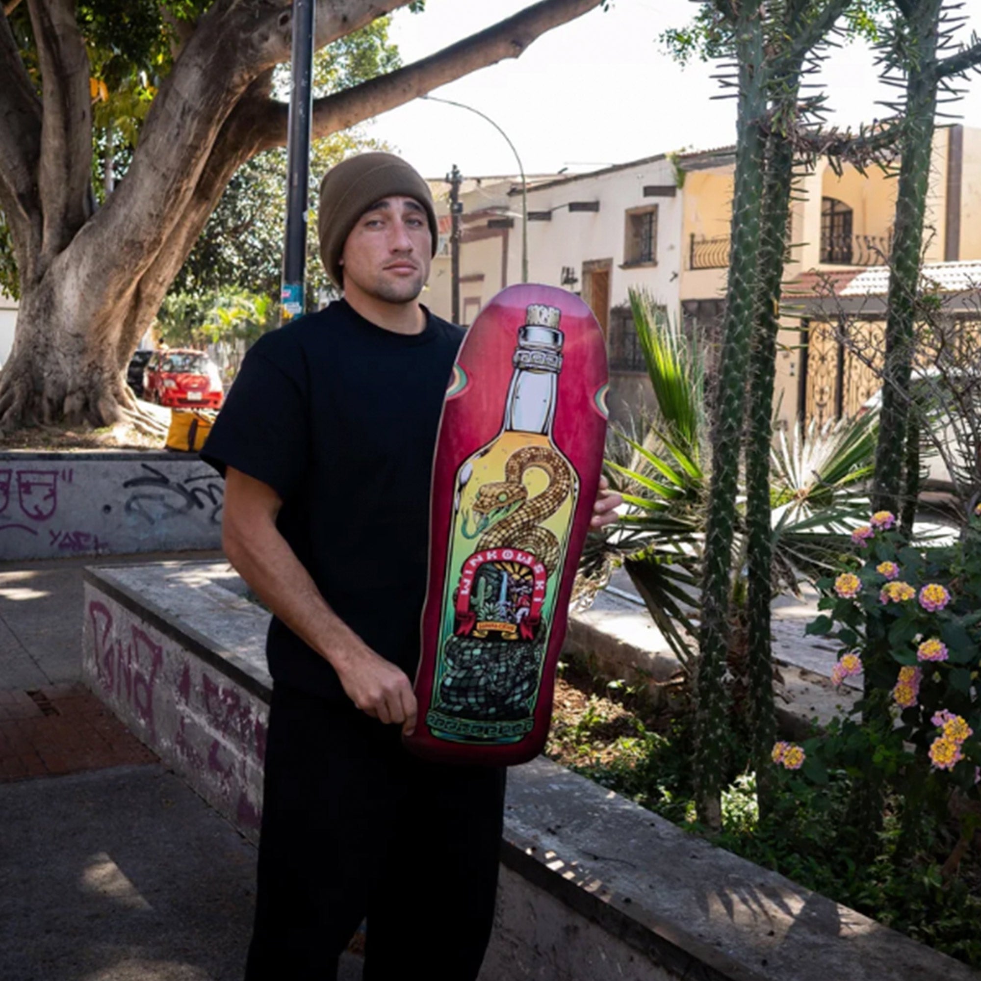 Gráfico black sunburst en la base y silueta custom diseñada por el propio Winkowski. Ancha, potente y con presencia real bajo los pies.